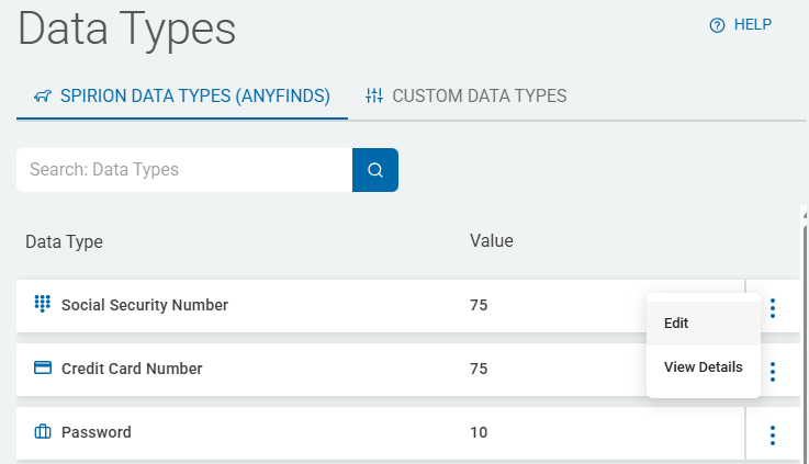 Use this topic to edit the way in which Spirion AnyFinds data types are used when scanning for sensitive data.
