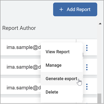 - On the far right of the report line, hover over the more options menu (3 vertical dots).