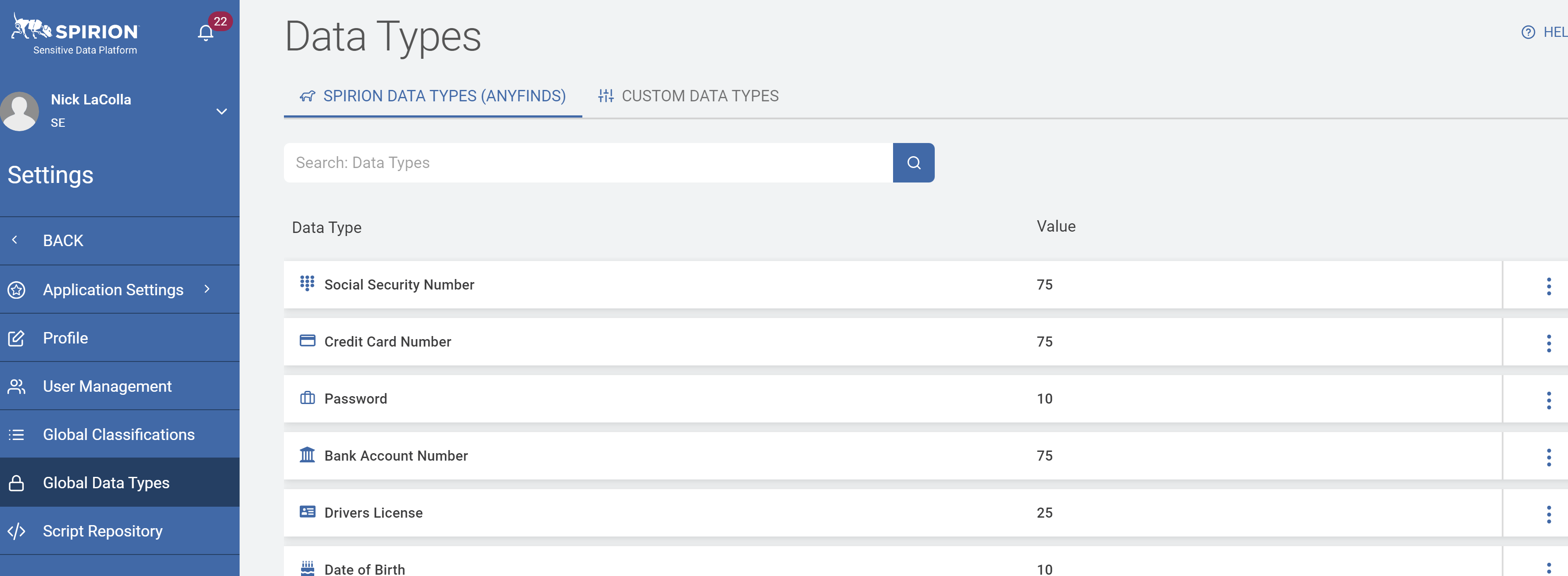 - For example, the Social Security Number Data Type is set to a dollar value of 165 ($165.00 per SSN instance).