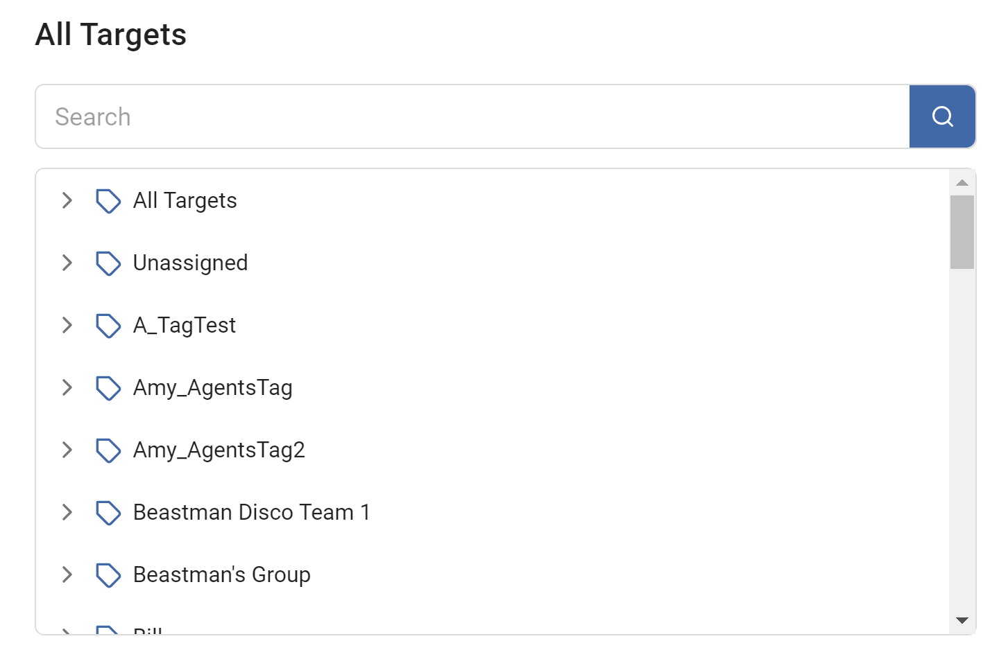 - Type a target name to search for or leave the line blank and click the search button to select from All Targets.