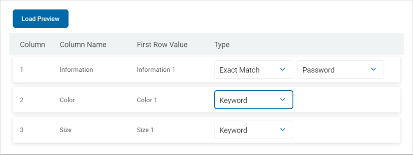 - If you select Exact Match as the Type, select an option from the Data Type drop-down list to the left.