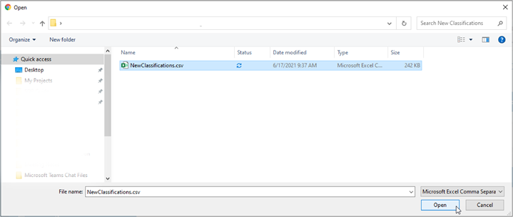- Locate the new Classification file (.csv) on your local computer.