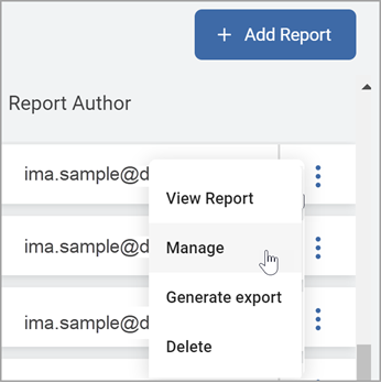- On the far right of the report line, hover over the more options menu.