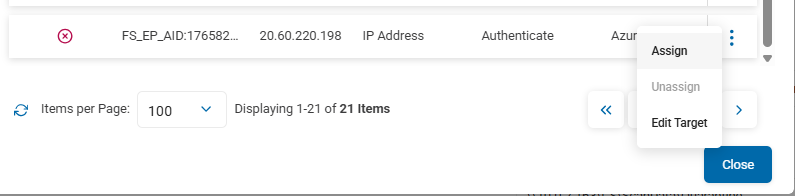 - Click the 3 ellipses in line with the Target name and select Assign. If the assignment is successful, a green check appears next to the Target name.
