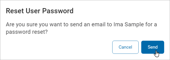 - Click Reset Password. A pop-up window displays to confirm whether to send an email to the user for password reset or not.