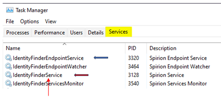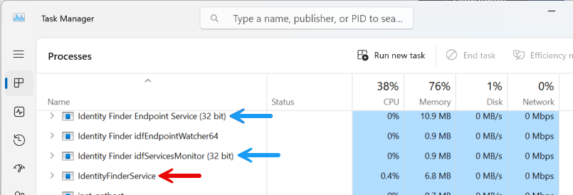 - Identity Finder idfServicesMonitor (blue arrows in the screenshot below)