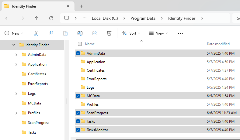 - Navigate to the directory C:\ProgramData\Identity Finder
