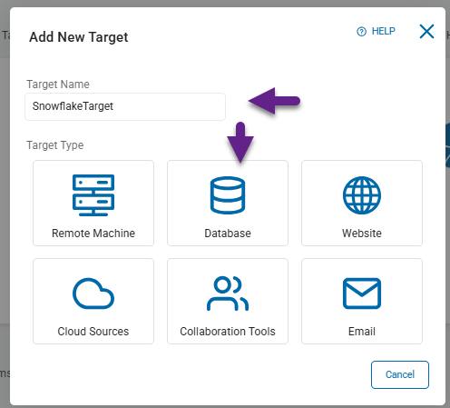 - Next, select the Database tile under the Target Type section.
