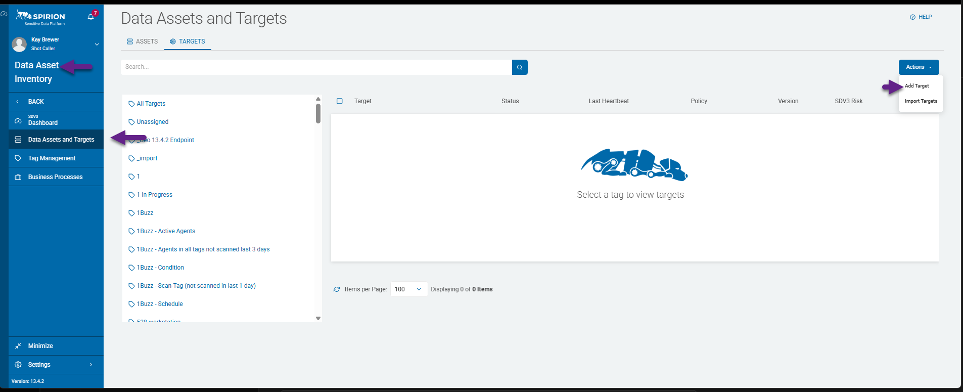 - From the left side navigation menu select Data Asset Inventory > Data Assets and Targets.