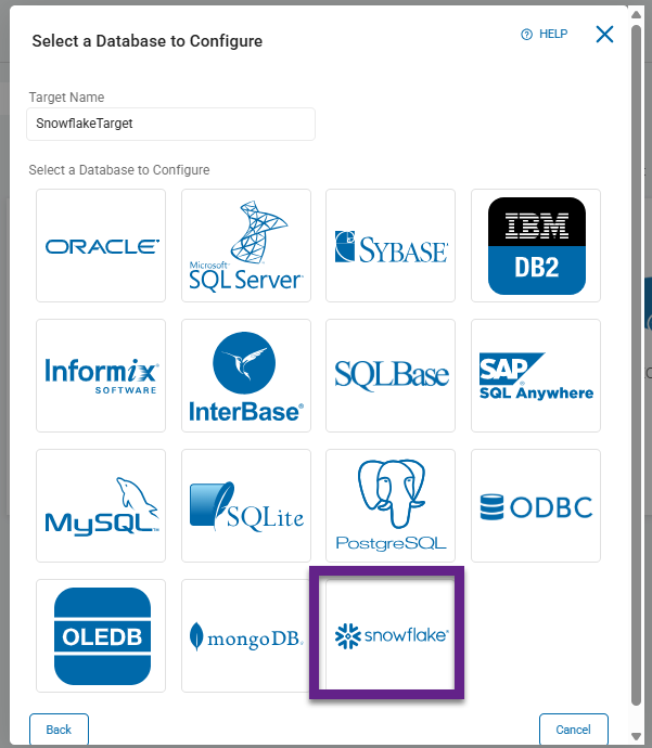- Select the Snowflake tile under the "Select a Database to Configure" section.