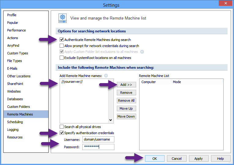 - Click Customize Remote Machine Search from the drop-down menu that appears under the carrot in the above picture.