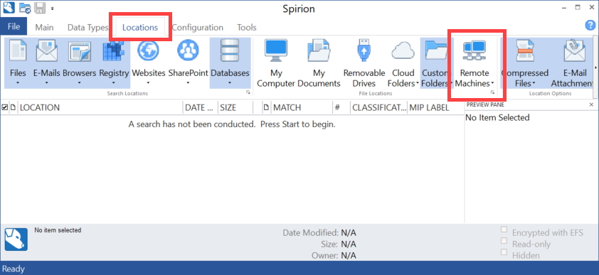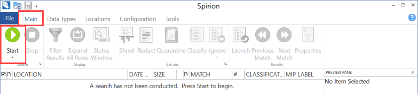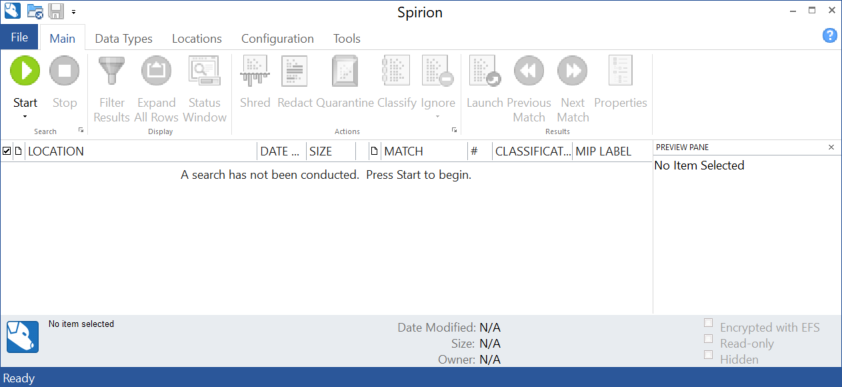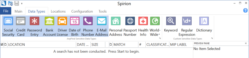 - Back in your local Spirion app select the Data Types tab and select the data types (single-click each to select/deselect) you wish to search for. Selected data types are highlighted in blue.