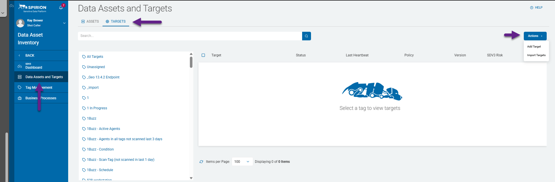 - Navigate to Data Asset Inventory > Data Assets and Targets.