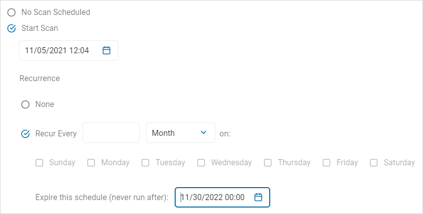 - Click the “Finish and Save” button to save and initiate the Exchange Online scan, per the schedule dictated on the “Schedule” tab: