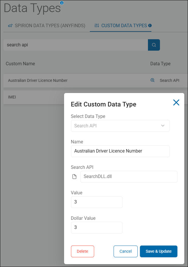 Now that you have created a SearchDLL.dll file, you can add it to Spirion Sensitive Data Platform to make a "Search API" data type.