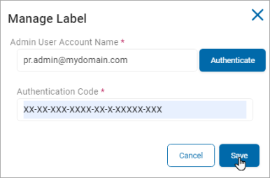 Note: If you enter value in any of the optional fields, it is mandatory to add values in the other optional fields as well. - In the Manage Label (Authenticated) section click the blue Manage button.