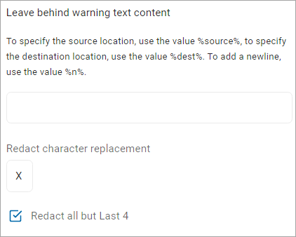 - To specify the destination location, use the value %dest%.