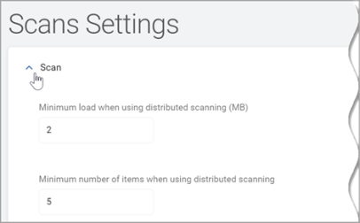 Note: If a distributed scan does not complete when run against a very large data set, set the thresholds to a minimum of 5 MB and a maximum of 10 MB and re-run the scan.