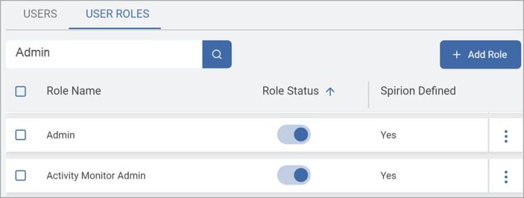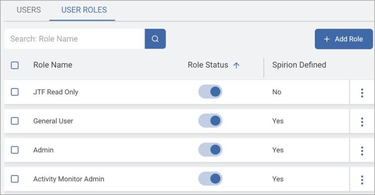 - Roles are displayed in a table by Role Name and Role Status (enabled or disabled).