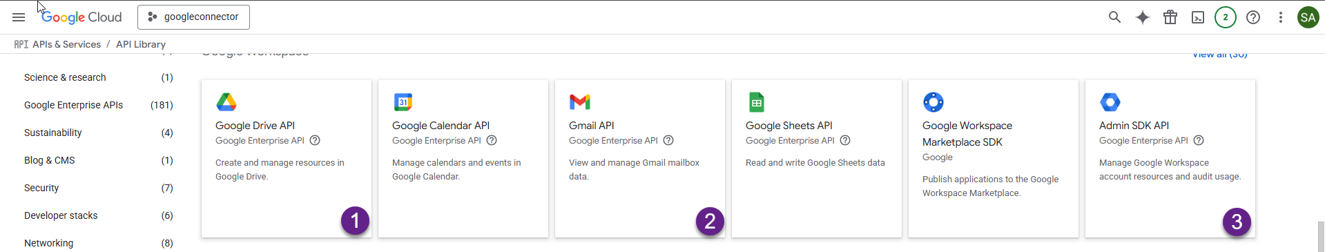To successfully search your Google Workspace, you must create a service account to authenticate in Google Workspace.
