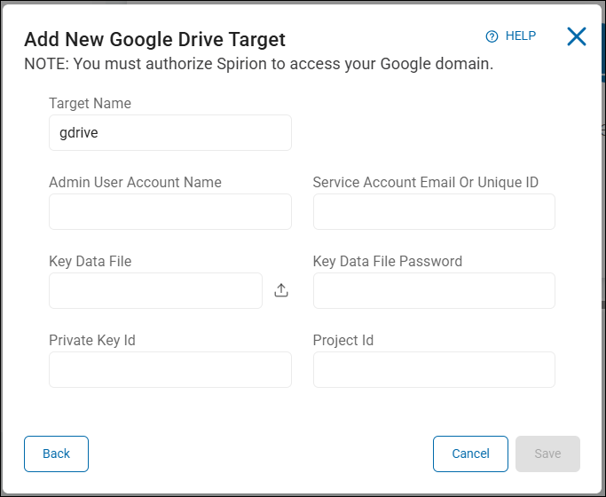 Before searching Google Drive, you must create a Google Drive Target in Sensitive Data Platform.
