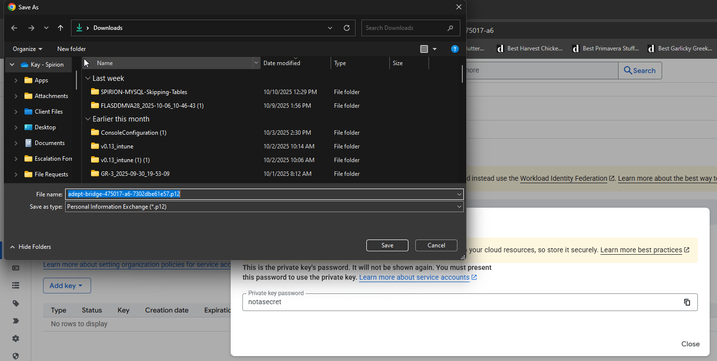 .p12key. - Private Key ID – See step 24 of “G Suite Side Authentication” section above