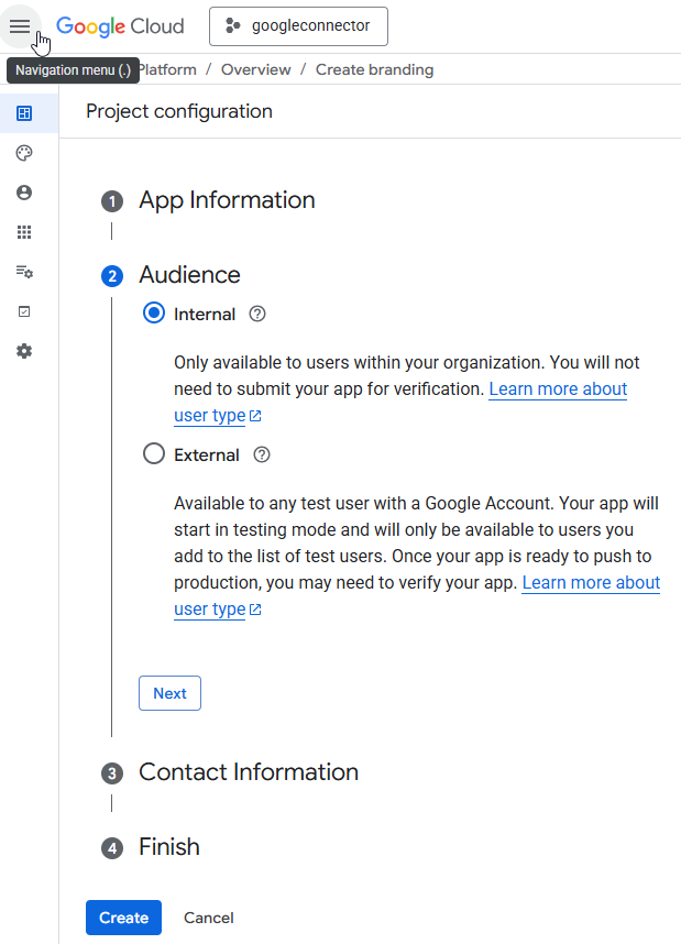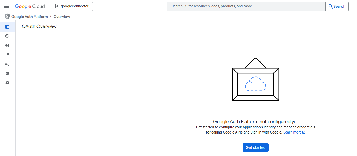 - Under the project (“Spirion”) navigate to APIs & Services -> OAuth consent. Note: If you have not set up the Google Auth Platform you will be redirected to set it up.
