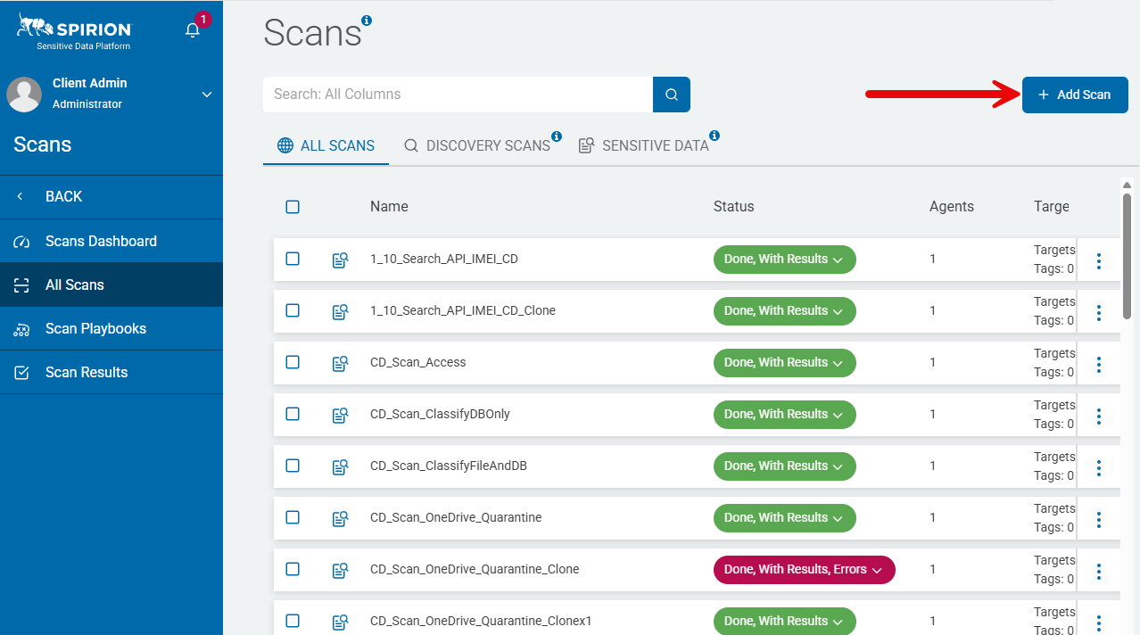 - Select the blue “Add Scan” button in the top right-hand corner:
