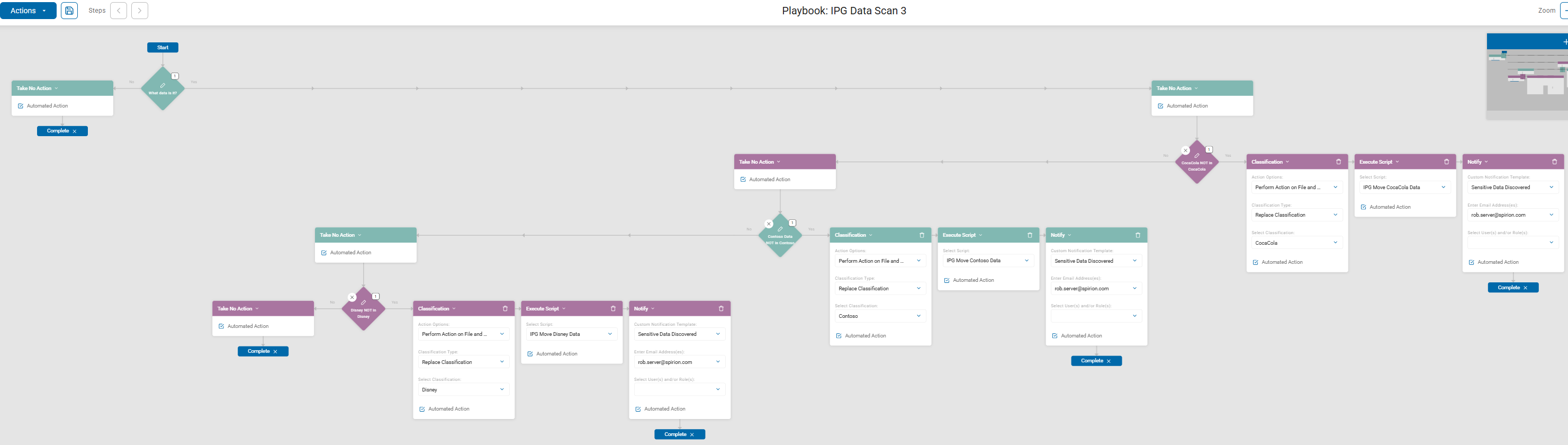 The topics on this page provide examples of scan playbooks. While these examples may not apply to your environment directly, they are useful in generating ideas and demonstrating the potential and capabilities of scan playbooks in Spirion Sensitive Data Platform.