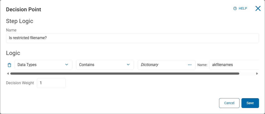 This decision point example scans for data and moves the data to a proper (safe) location.