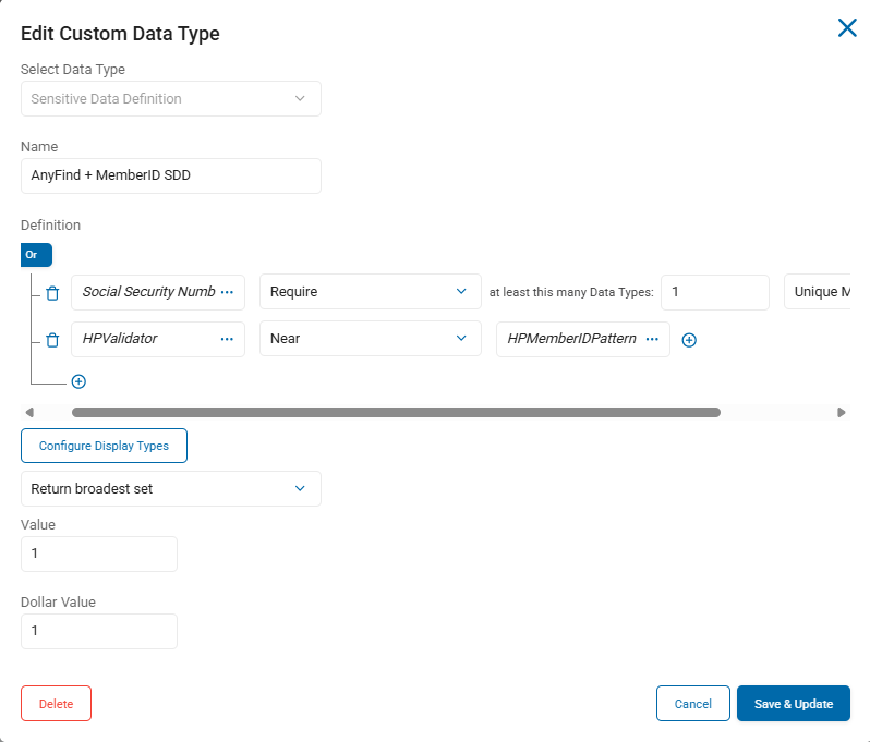 In this example, it is a Sensitive Data Definition data type named "AnyFind +MemberID SDD."