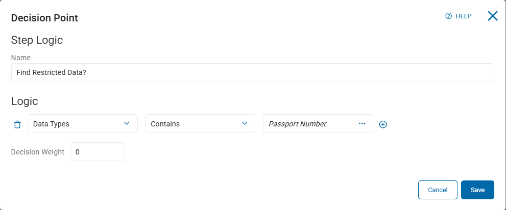 - The first decision point - Find Restricted Data? - asks does the location (file) scanned contain a simple Passport number?