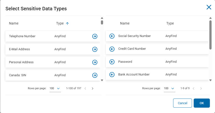 - At least 1 unique match of the following AnyFinds: Social Security Number, Credit Card Number, Password, Bank Account Number, Drivers License, Date of Birth, Passport Number, IPv4, Machine Readable Passport Number