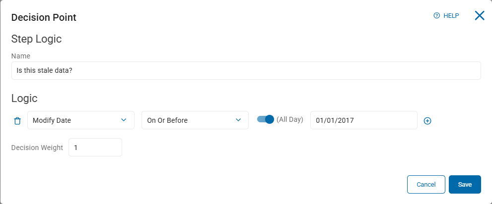 - The data is measured by the last date it was modified - "Modify Date" under Logic - on or before January 1, 2017 ("01/01/2017") - American date format.