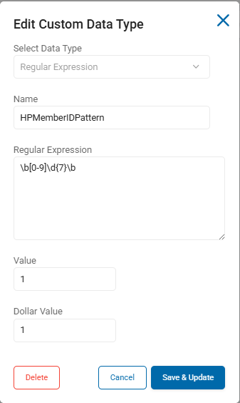- The keywords in a dictionary file named "HPValidator" must be found near the RegEx data type "HPMemberIDPattern," the pattern of health plan member IDs.