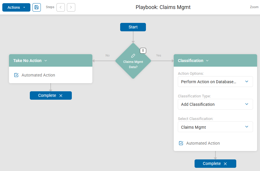 This playbook example classifies locations (scanned files) with claims management data as "Claims Mgmt."