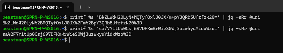 - Client Id: BkZLWd420LyN+MQTyfOxlJ0JX/m+pY3QRb5Ufzfzk20=printf %s 'BkZLWd420LyN+MQTyfOxlJ0JX/m+pY3QRb5Ufzfzk20=' | jq -sRr @uri