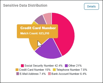 - Click the Details button in the top right corner of the "Sensitive Data Distribution" tile to view the distribution of sensitive data across all repository types, listed here: