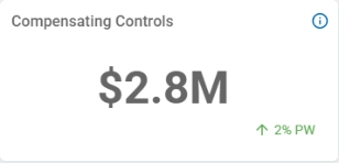 - Comparison Metrics: It features data cards that show percentage changes in risk over time (e.g., Compensating Controls and Remediated Risk). These are updated on a weekly basis (Sunday to Sunday).