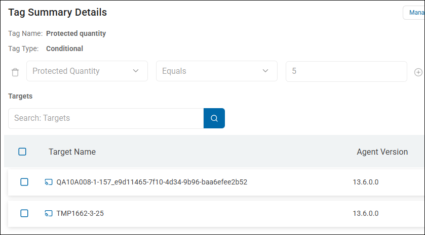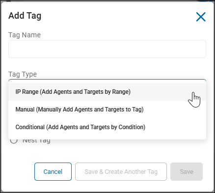- Manual Tag types require you to manually add endpoints (Targets or Agents) to the Tag