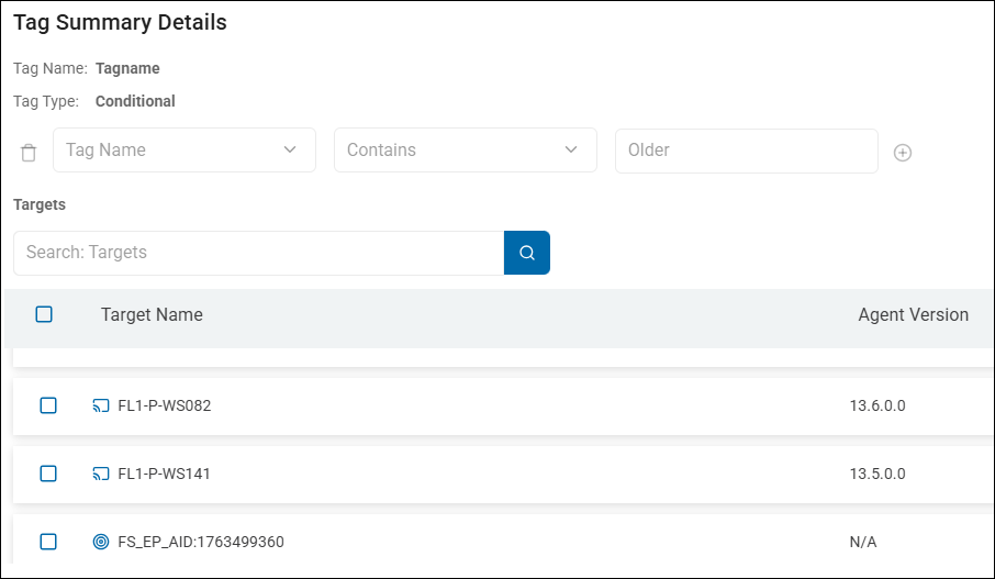 Then all Agents/Targets (endpoints) captured by tags with the term "Older" in the tag name are returned. Such Tags could include: