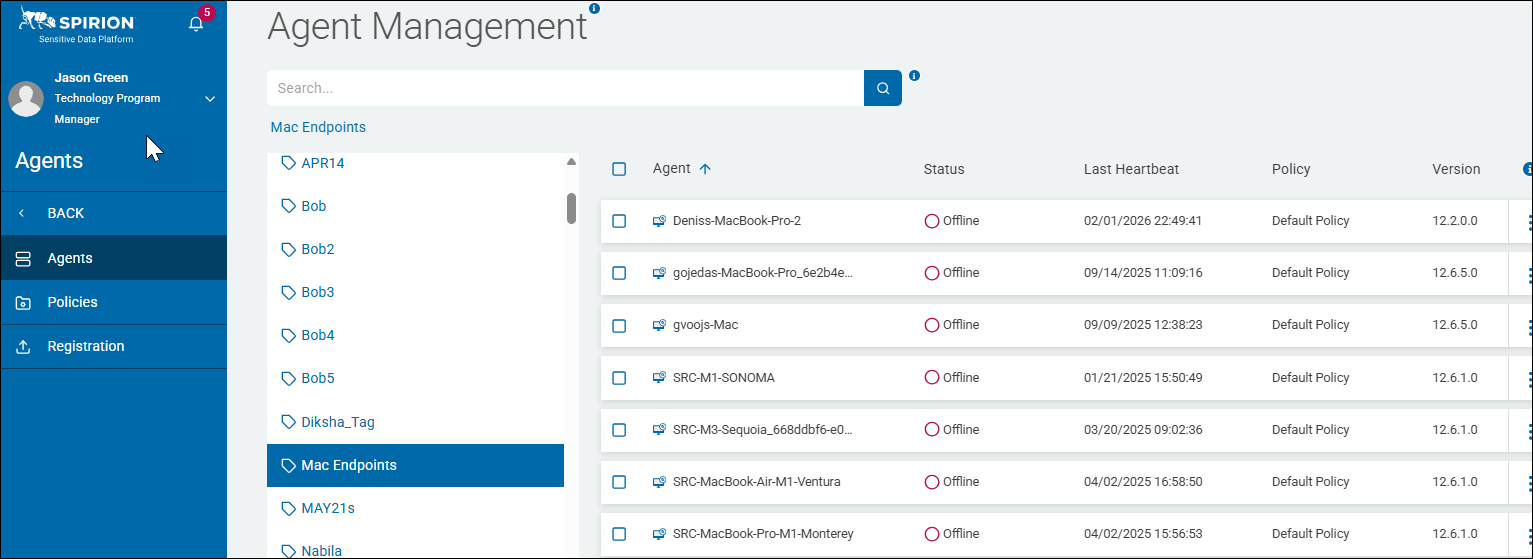 This Tag collects all of the Spirion Agents installed on Mac endpoint platforms (macOS laptops or workstations) in your environment.