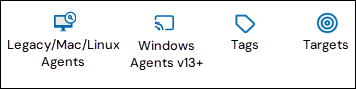 Legacy/Mac/Linux Agents, Windows v13+, Tags, and Target Icons used in Spirion Sensitive Data Platform