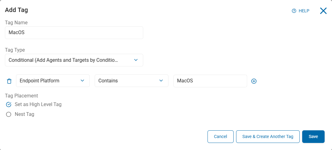 - The Tag "macOS" is a Conditional type Tag that captures targets (desktops, laptops, etc.) using the macOS operating system. See the image below: