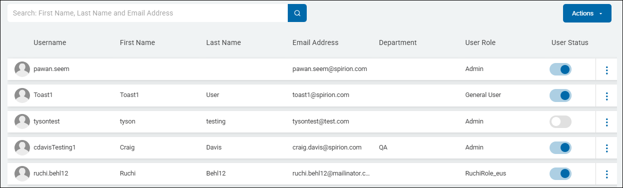 - Users are displayed in a table sorted by the following columns: