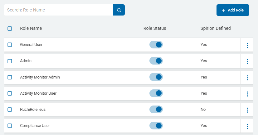 - User Roles are displayed in a table sorted by: