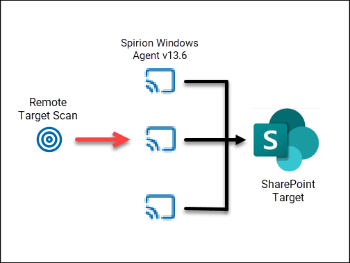 For any scan of a non-local Target, Spirion distributes the workload conceptually like this: