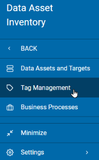 Tags can be created, viewed, searched for and managed on the Tag Management screen, under Data Asset Inventory in the left navigation: