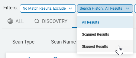 - Next to "Filters" click the Search History drop-down menu and select Skipped Results.