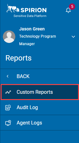 To access Custom Reports in Spirion Sensitive Data Platform use the following steps: